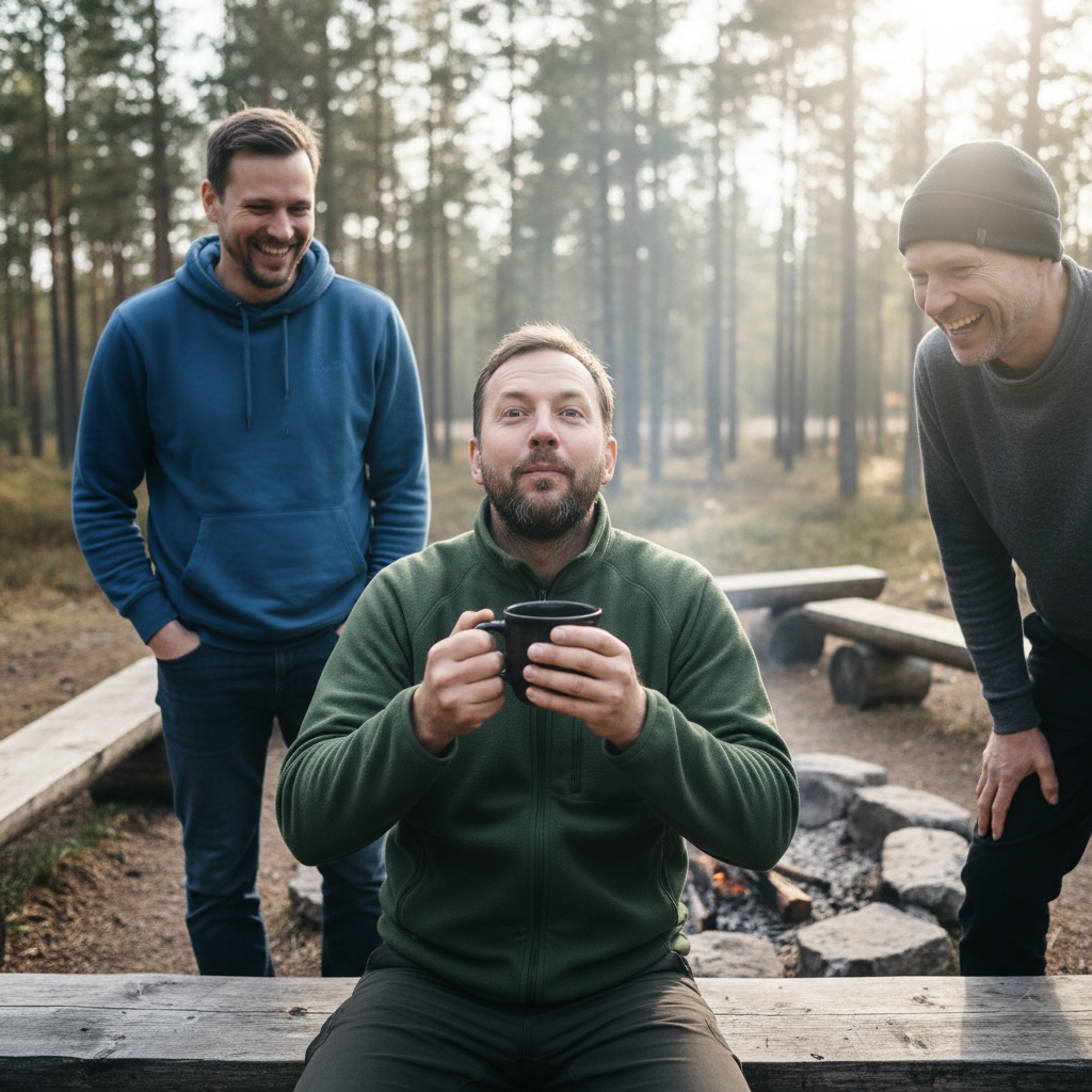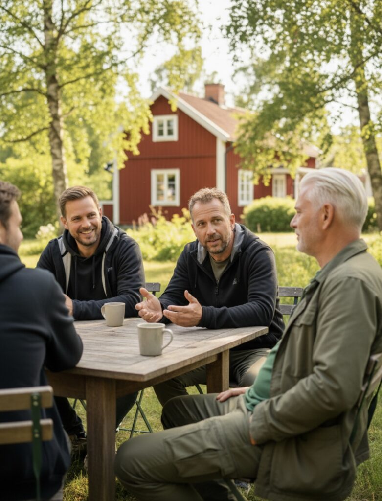Die Schwedenwoche bietet die seltene Kombination aus klarer Struktur und echter Freiheit. Tagsüber wechseln sich Coaching-Sessions und Outdoor-Elemente ab, abends sitzen alle am Feuer, hören zu oder teilen eigene Gedanken. So entsteht ein ehrlicher Austausch unter Männern, getragen von Respekt, Humor und Offenheit.