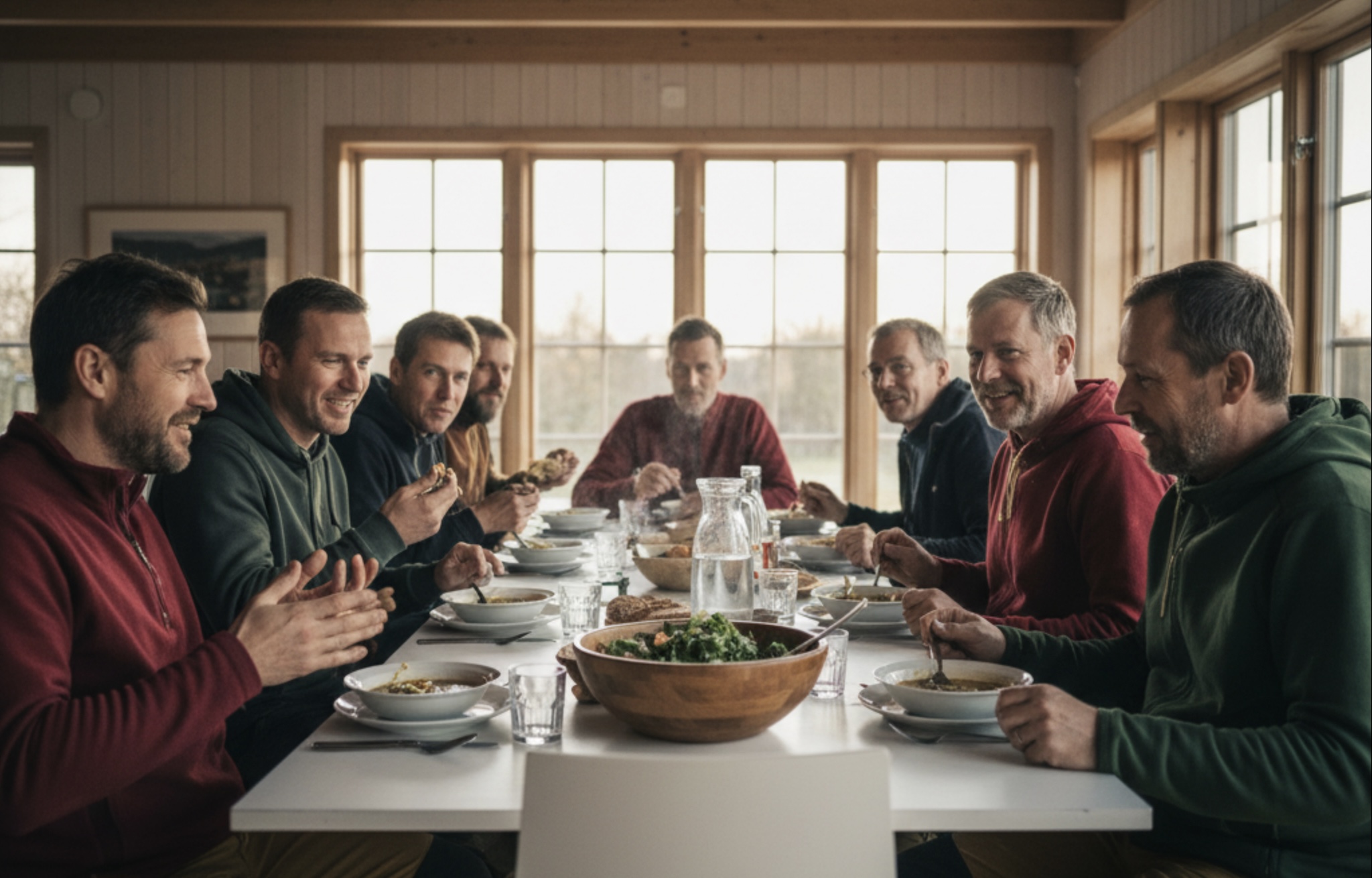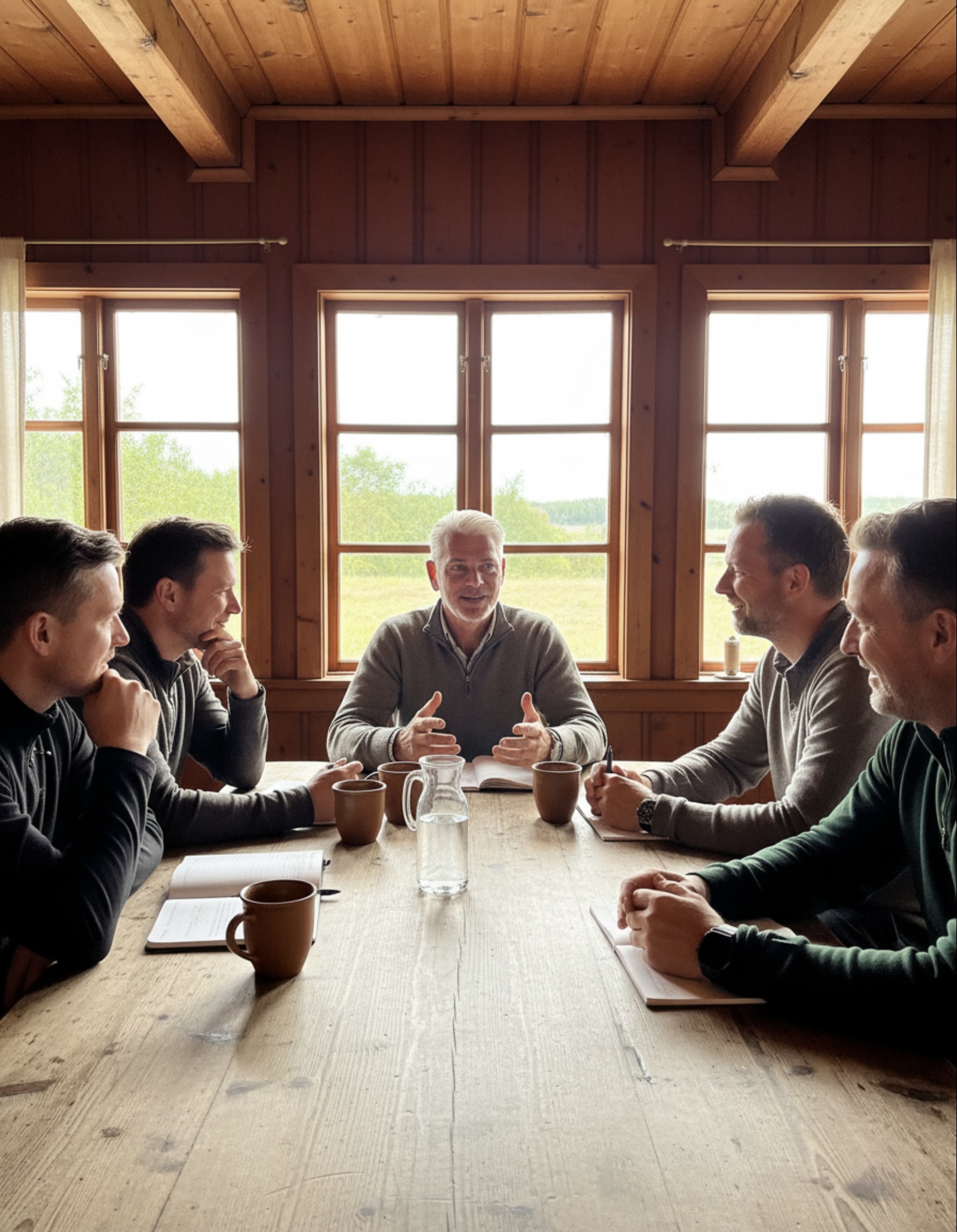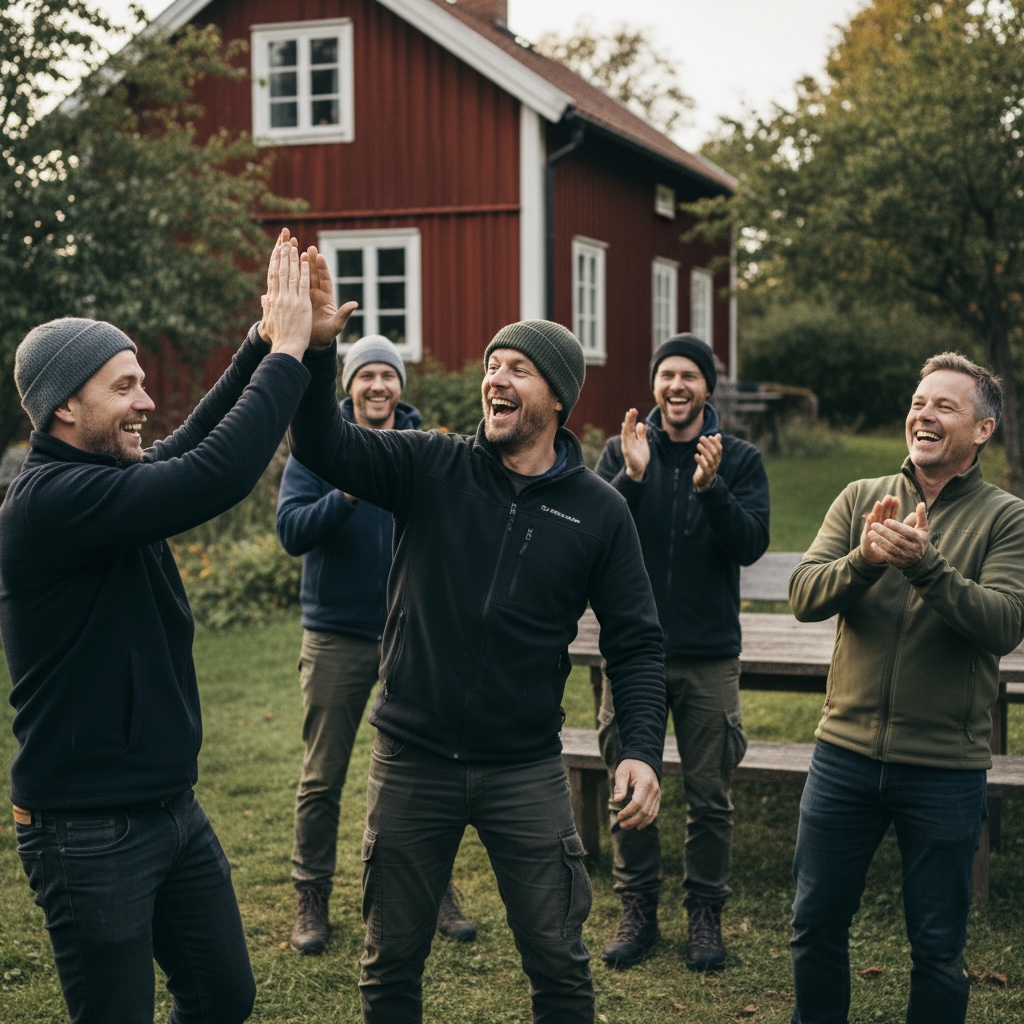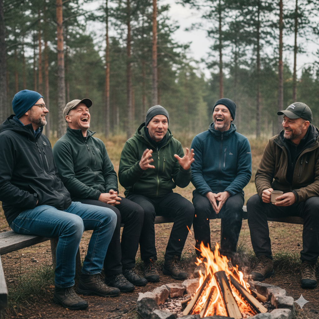 Die Schwedenwoche bietet die seltene Kombination aus klarer Struktur und echter Freiheit. Tagsüber wechseln sich Coaching-Sessions und Outdoor-Elemente ab, abends sitzen alle am Feuer, hören zu oder teilen eigene Gedanken. So entsteht ein ehrlicher Austausch unter Männern, getragen von Respekt, Humor und Offenheit.